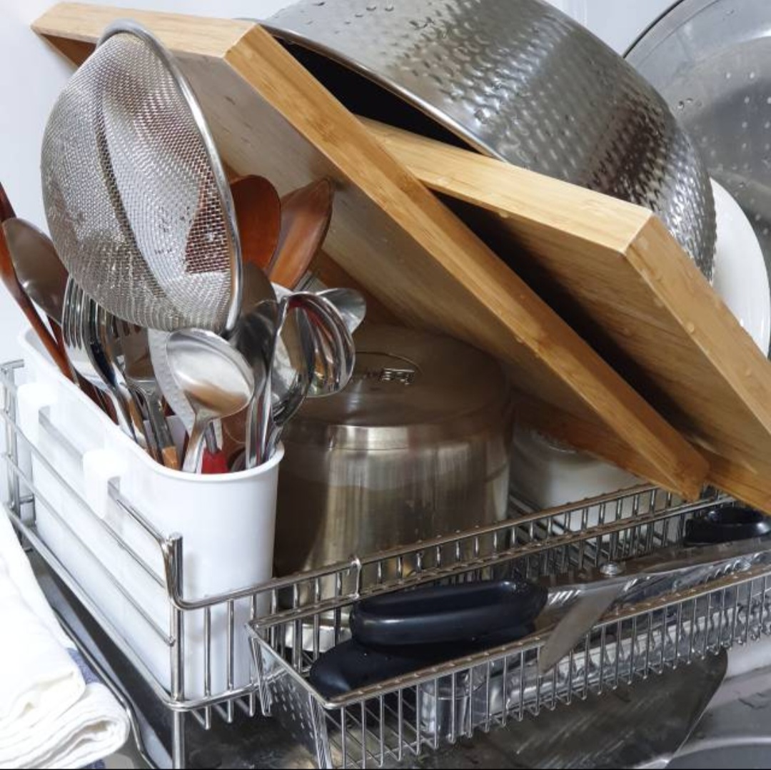 식기건조대를 배치할 공간이 좁기도 하고 설거지하고 식기건조대, 키친크로스에서 말리거나 바로 물기 닦아서 수납하기 때문에 작은 사이즈로 샀다