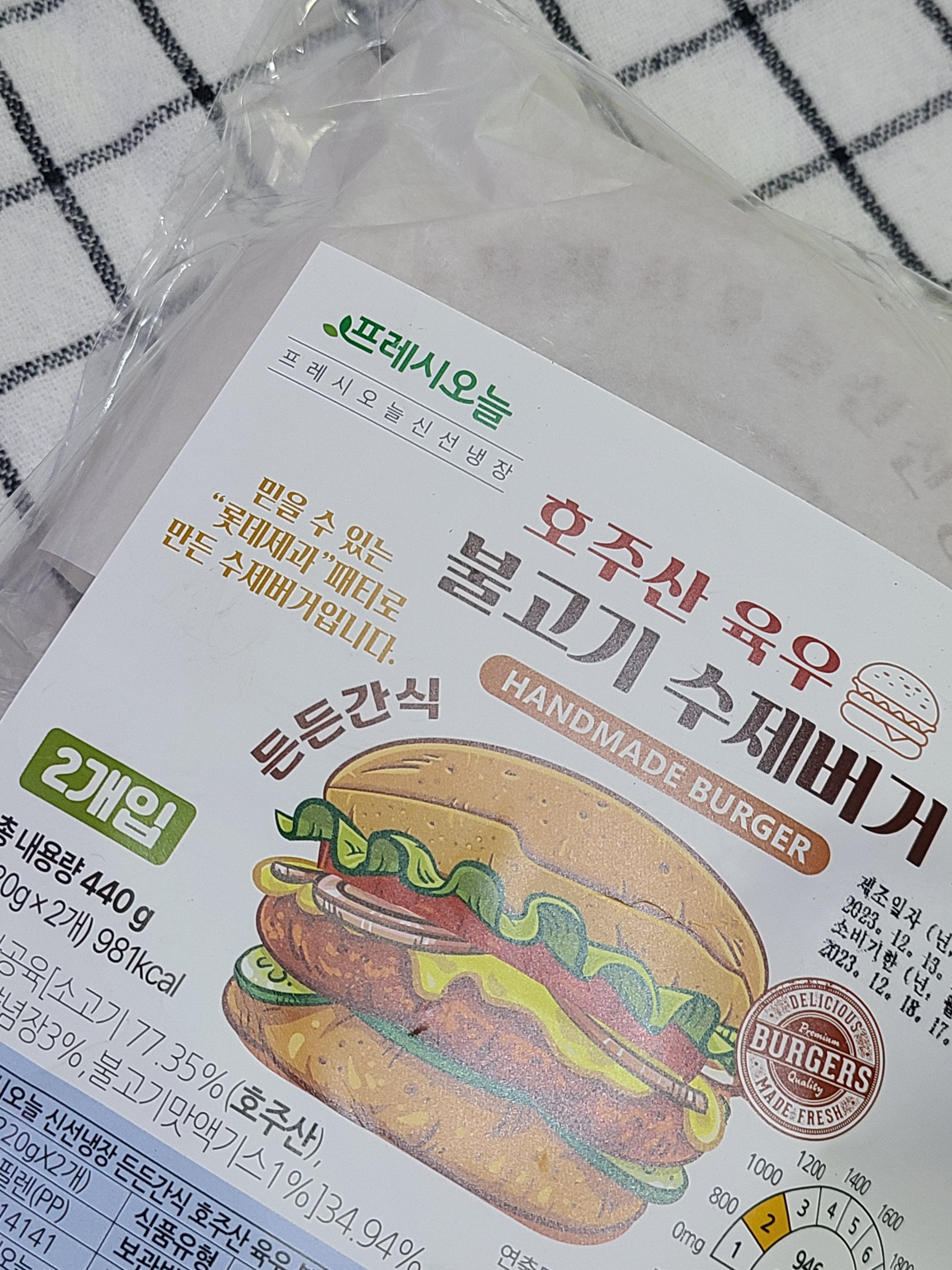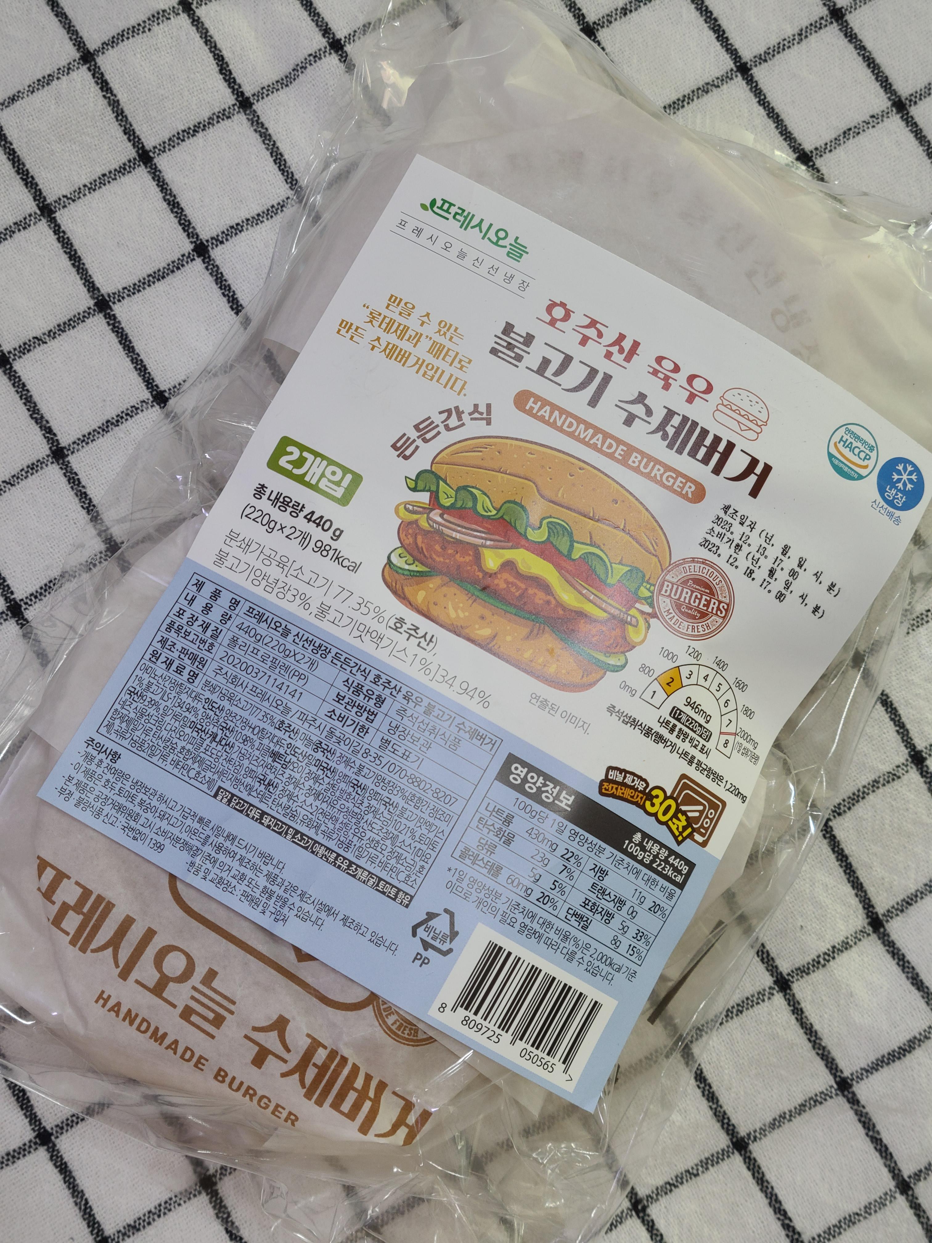 프레시오늘 신선냉장 든든간식 호주산 육우 불고기 수제버거 2개, 220g